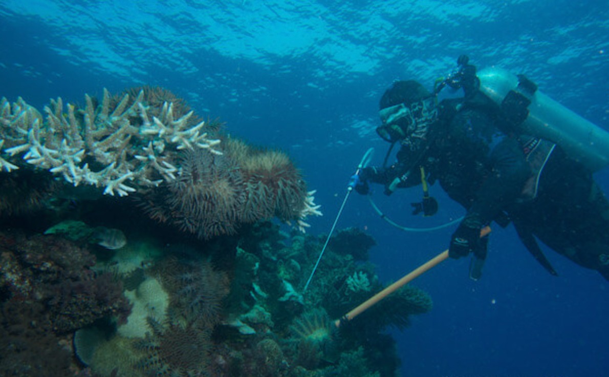 From a tourism point of view, high numbers of CoTS are devastating to hard coral populations in a small area such as Reef Tourism site. Tourism operators inside the World Heritage Great Barrier Reef, utilise several methods to increase coral resilience at their sites. Ongoing CoTS control programmes are one initiative operators use to preserve and protect live coral cover. These programmes usually use SCUBA divers to inject CoTS with a corrosive substance. Traditionally these methods were multi-shot and used swimming pool acid (sodium bisulphate), but have recently evolved to single shot methods and using organic substances such as ox bile salts or vinegar. These advances along with the Pest Management strategy have seen CoTS control at an individual reef level become increasingly efficient in recent years. For more information, visit www.gbrmpa.gov.au and www.ampto.org